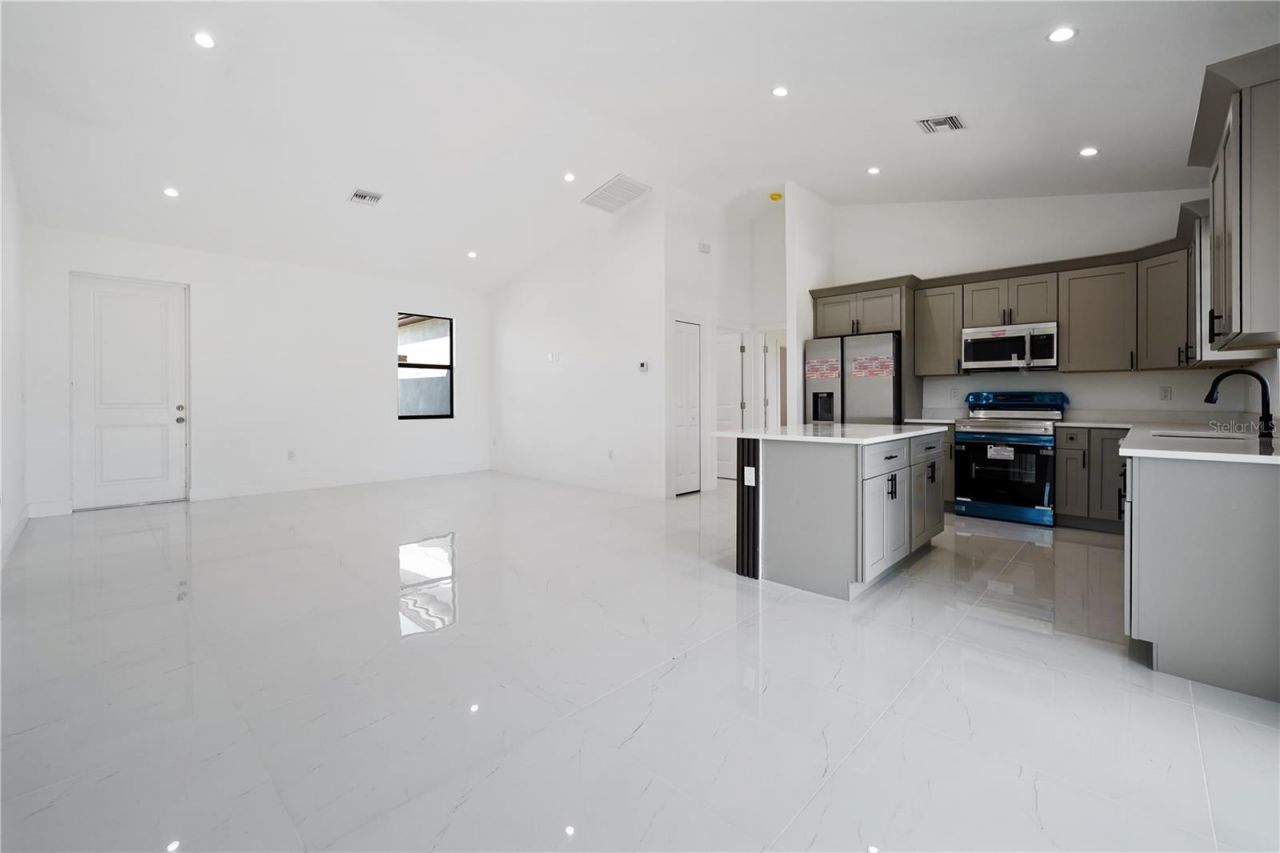 Spectacular 4 Bedroom 2 Bath, and two car garage. CBS NEW CONSTRUCTION Home is in one of the great areas of Cape Coral. Plenty of living room space with High Ceilings and a marvelous Open Floor Plan Kitchen with upgraded cabinets and countertops. All Windows and Doors are top-quality Hurricane impact resistant. The master bedroom is large, with plenty of closet space and a large bathroom. All Rooms are spacious and have excellent storage space. The home's patio features a pool and a large backyard. Open concept design is perfect for entertaining and creating lasting memories with your loved ones. The kitchen is a chef's dream, with modern stainless-steel appliances, beautiful countertops